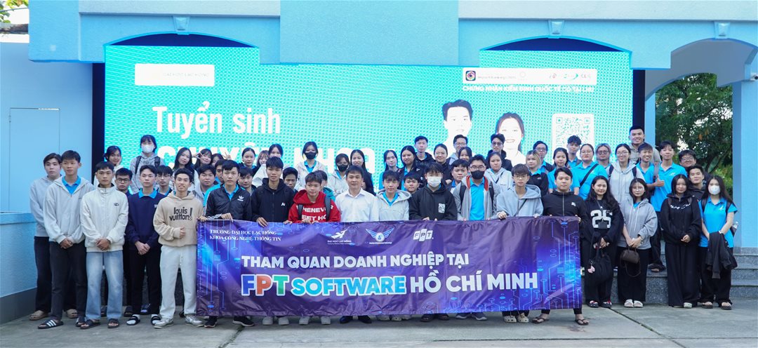 Ngày 09/12/2025, Khoa Công nghệ Thông tin (CNTT) đã tổ chức chuyến tham quan doanh nghiệp tại FPT HCM dành cho hơn 90 sinh viên thuộc nhiều ngành: Truyền thông đa phương tiện, Trí tuệ nhân tạo (AI), Công nghệ Thông tin và Thương mại điện tử (TMĐT). Đây là một trong những hoạt động học tập thực tiễn quan trọng, giúp sinh viên tiếp cận môi trường làm việc chuyên nghiệp cũng như tìm hiểu sâu hơn về hệ sinh thái công nghệ của FPT.