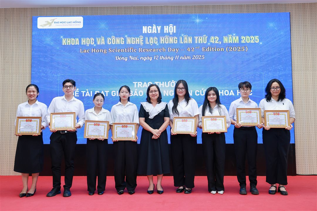 Căn cứ Quyết định số 1601/QĐ-ĐHLH và 1613/QĐ-ĐHLH do Hiệu trưởng Trường Đại học Lạc Hồng ký vào đầu tháng 11 năm 2025, Khoa Quản trị - Kinh tế Quốc tế đã ghi nhận những kết quả tích cực tại Ngày hội Khoa học và Công nghệ lần thứ 42. Điểm nhấn của kỳ nghiên cứu này là sự đồng đều ở cả hai hạng mục Báo cáo và Triển lãm, với thành tích cao nhất thuộc về nhóm sinh viên Mai Vũ Thanh Trúc và Đỗ Thanh Hà (lớp 22QT111). Dưới sự hướng dẫn của ThS. Phan Thị Hời, nhóm đã xuất sắc đạt Giải Nhất hạng mục Báo cáo với đề tài về ý định mua sản phẩm thân thiện môi trường.