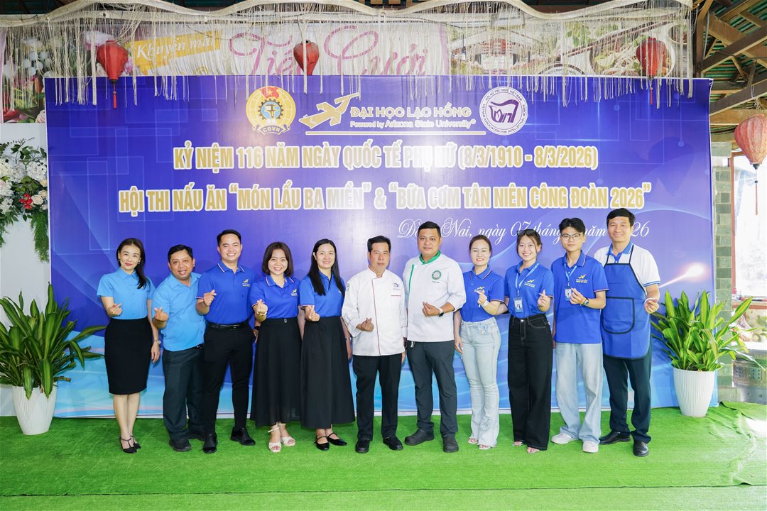 Hòa chung không khí hân hoan kỷ niệm 116 năm Ngày Quốc tế Phụ nữ (08/03/1910 – 08/03/2026), ngày 07/03/2026, Công đoàn Trường Đại học Lạc Hồng đã tổ chức chương trình kỷ niệm kết hợp Hội thi nấu ăn “Món lẩu ba miền”Bữa cơm Tân niên Công đoàn 2026 tại Hội quán Trấn Biên.