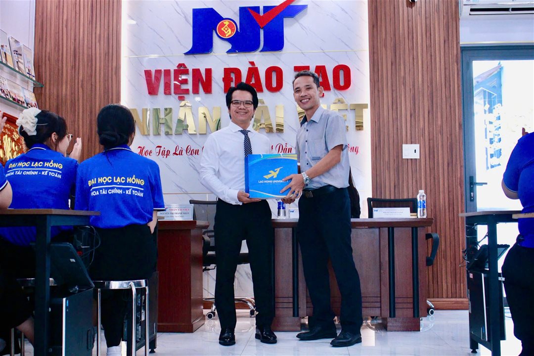 Kết thúc buổi tham quan, đại diện Khoa Tài chính – Kế toán đã trao tặng quà lưu niệm và gửi lời cảm ơn chân thành đến Ban lãnh đạo Công ty Nhân Tài Việt vì sự hợp tác và hỗ trợ nhiệt tình trong việc đồng hành cùng hoạt động đào tạo của Khoa.