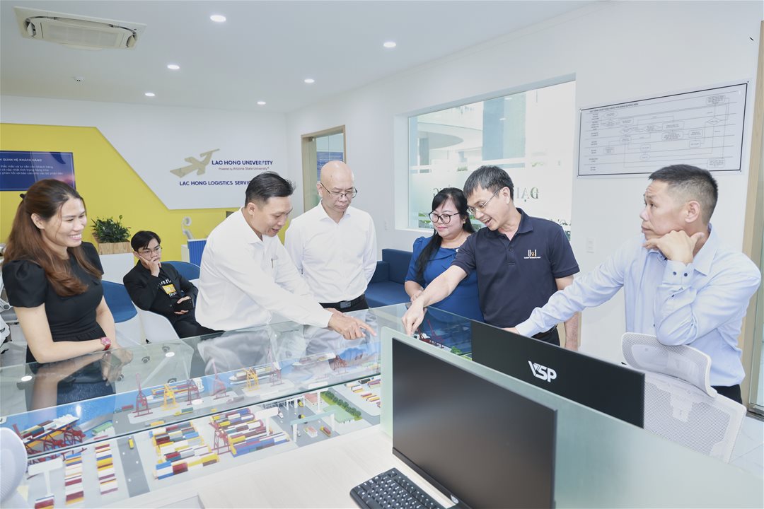 Sau phiên thảo luận, đoàn công tác đã được dẫn tham quan phòng thực hành Logistics và hệ thống cơ sở vật chất đào tạo của Trường Đại học Lạc Hồng. Chương trình tham quan giúp đại biểu có cái nhìn toàn diện về năng lực đào tạo và định hướng phát triển nguồn nhân lực logistics chất lượng cao tại Nhà trường.