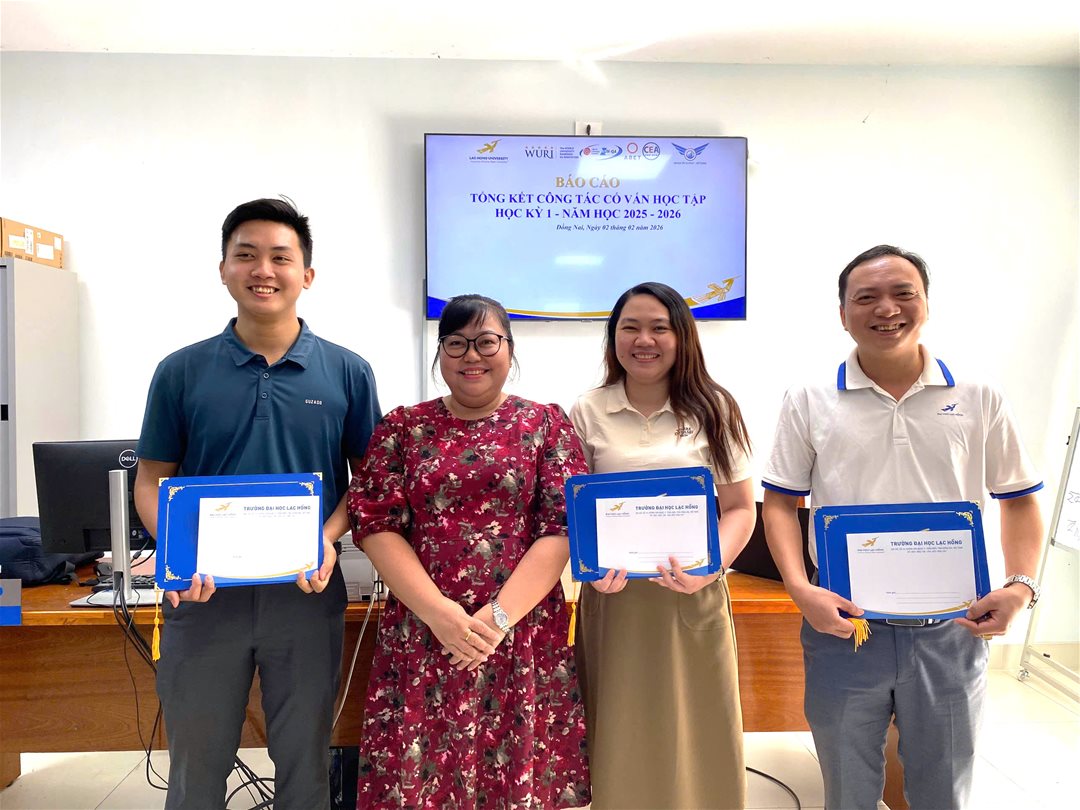 Ngày 02/02/2026, tại phòng B202, Khoa Tài chính – Kế toán, Trường Đại học Lạc Hồng đã tổ chức chương trình Báo cáo tổng kết công tác Cố vấn học tập học kỳ I, năm học 2025 – 2026 nhằm đánh giá toàn diện kết quả triển khai hoạt động cố vấn, đồng thời ghi nhận và biểu dương những cá nhân có thành tích xuất sắc trong công tác hỗ trợ sinh viên.