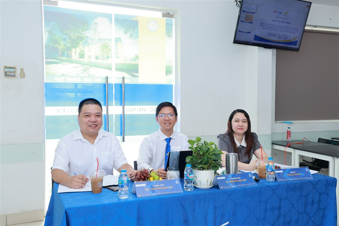 The defense sessions took place in a serious yet open and inspiring atmosphere, combining academic rigor with emotional engagement. Students confidently presented their research, demonstrating their analytical thinking, scientific reasoning, and ability to process real-world data. The reviewers and council members raised in-depth questions regarding research methodology and model coherence, while also providing constructive feedback and improvement directions, helping students develop more comprehensive perspectives on their research issues.
