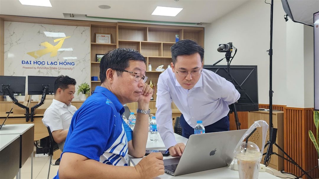 Figure 3: PhD. Nguyễn Văn Tân discussing implementation directions with Mr. Ngô Hữu Thống